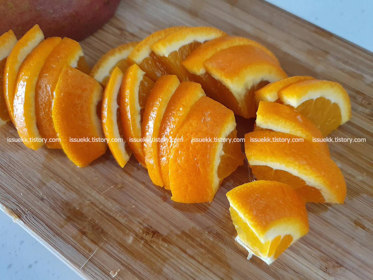 레몬도과 오렌지도 슬라이드컷을 해서 과일의 단맛이 잘 빠져 나올수 있도록 해줍니다.
