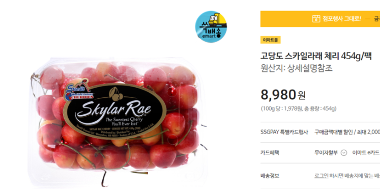 하지만 이 체리는 미국에서 체리가 생산되는 량의 약 1%밖에 되지않아서 쉽게 접할수 없는게 단점인데요. 장을 보러갔을때 스카일라래 체리가보이신다면 꼭 한번 드셔보세요.