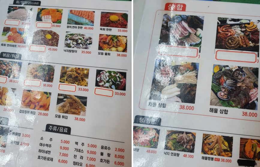 여수 낭만포차거리 가격은 거의 비슷하다고 보시면 되세요. 대표 메뉴인 삼합들은 3만 원대이고, 그밖에 안주들은 2만 원 대정 도로 솔직히 저렴하진 않습니다. 바로 바다가 지역이다 보니 해산물이 다른 지역보다 저렴할듯한데 그렇지는 않더라고요. 그래도 분위기 값이니 이 정도는 또 다들 즐겁게 맛있게 먹고 가는듯합니다.