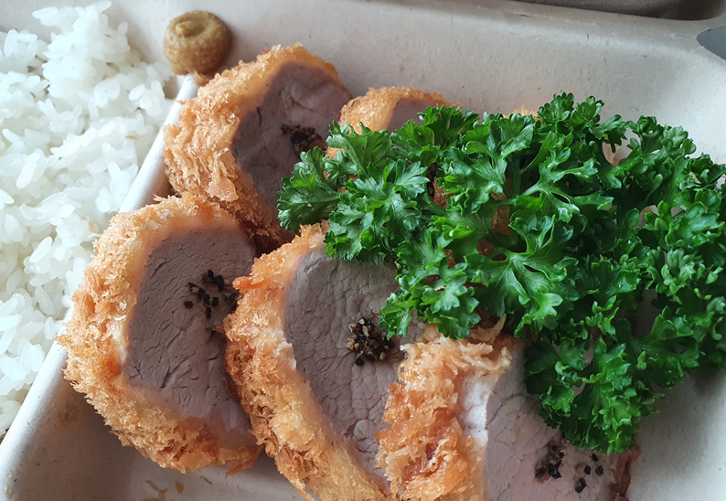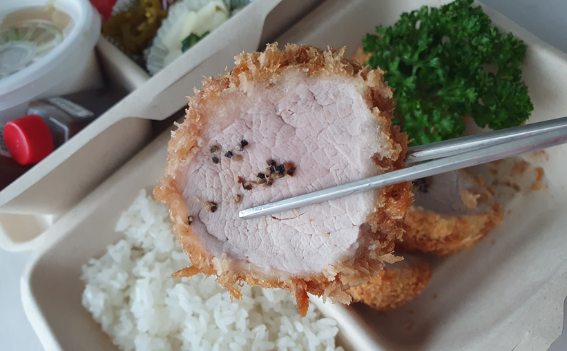 그리고 약 15분뒤 먹기위해 먹기위해 열었을땐 조금 식긴했지만 날이 더워선지 약간의 온기는 느껴지는것 같았습니다. 확실한건 식어도 맛있습니다 ! 하지만 매장에서 먹었던 분들의 사진을 보면 안심 돈까스에 선홍빛의 빗깣이 도는데 바로 포장을 해서인지 돈까스는 하얗게 잘 익었더라구요.