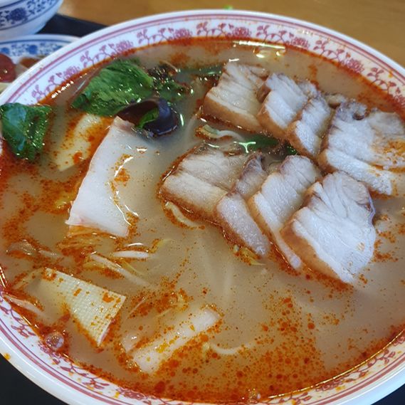 기다리던 차슈 마라탕이 나왔습니다. 차슈를 추가해서 평소보다 2배로 양이 많아 만족스러웠지만 추가금을 생각하면 가격 대비 고기양은 얼마 되지 않아 아쉽기도 했습니다. 두툼하게 썰린 차슈는 딱 보쌈 같은 게 야들야들하게 씹혀 마라탕이랑 함께 먹기에 딱 좋았습니다.