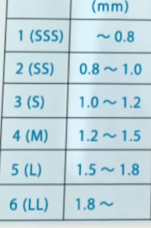 치아의 틈새는 개인차가 있기 때문에 치간칫솔 SSS(~0.8mm) 부터 치간치솔SS(0.8~1.0mm) , 치간치솔S( 1.0~1.2mm) , 치간치솔M( 1.2~1.5m) , 치간칫솔 L( 1.5~1.8mm) ,치간칫솔LL( 1.8mm~) 까지 미세한 크기로 치간칫솔 사이즈가 나누어 져 있습니다.