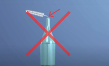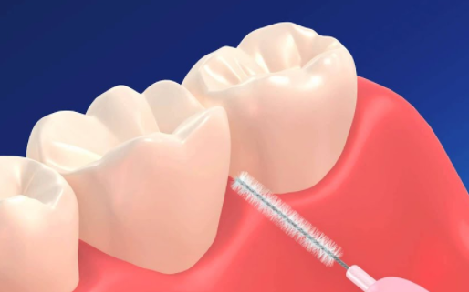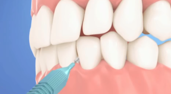 치간 칫솔을 사용할 때 넣는 방향에주의가 필요합니다. 치간칫솔을 비스듬하게 해여 천천히 대각선으로 넣어줍니다.