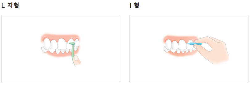 치간칫솔은 L자형과 I형 2가지가 있습니다.