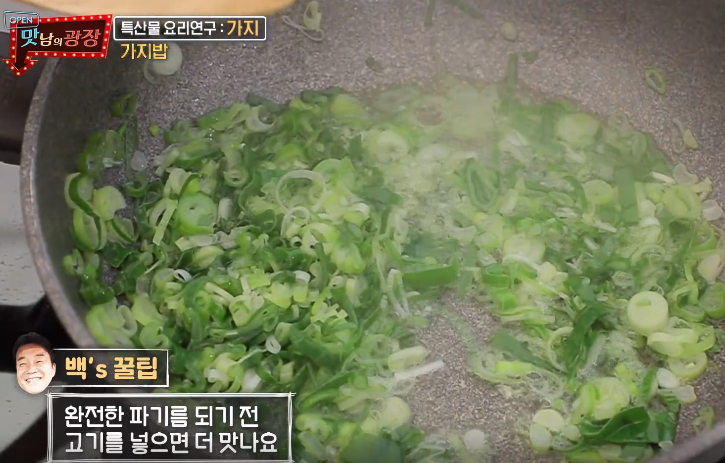 맛남의 광장 가지밥을 만들때는 가지맛을 살리기위해 고기를 넣지 않았는데, 집에서 요리하실때는 간 돼지고기를 추가해서 먹으라고 백종원 가지밥 만드는 방법 꿀팁을 주셧습니다. 파기름이 제대로 만들어지기전에 넣으면 고기의 육즙이 추가되어 더욱 맛있어집니다.