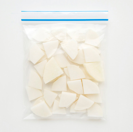 무를 먹기 좋은 크기로 썰어서 소분하여 지퍼백에 넣은후 무 냉동보관을 합니다. 그럼 된장국이나 요리를 할때 그냥 꺼내서 사용하시면되세요.