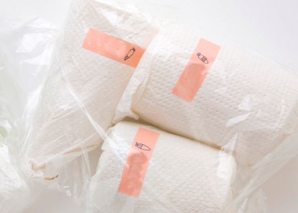 3 등분 한 무는 각각 키친 타올로 꼼꼼히 감싼 후 비닐 봉투에 넣어 묶거나 지퍼팩에 넣어 밀봉하여 무 보관 합니다. 키친 타올에 습기가 오면 치킨타올을 갈아줍니다.