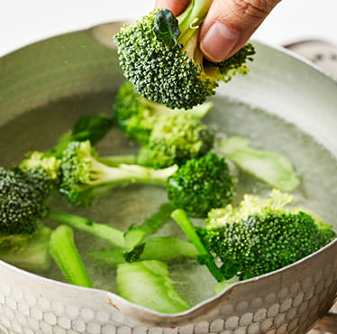 1) 냄비에 브로콜리가 잠길만큼 물을 넣고 끓입니다.